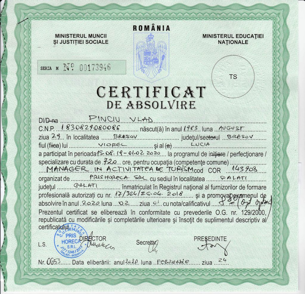 Abbiamo lavorata nel settore turistico per oltre 10 anni come guide professionali autorizzate, siamo andati in tutti gli angoli dalla Romania e abbiamo accumulato esperienza nell`organizzazione di tour culturali per famiglie, amici e grandi gruppi.