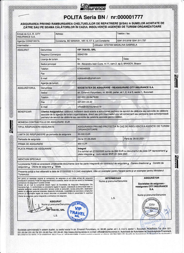VIP TRAVEL – siamo agenti di viaggio dedicati, tour-operator dalla Romania e organizziamo tour in rumeno, inglese e italiano. Tutti I dipendenti sono professionali e orientati al cliente.